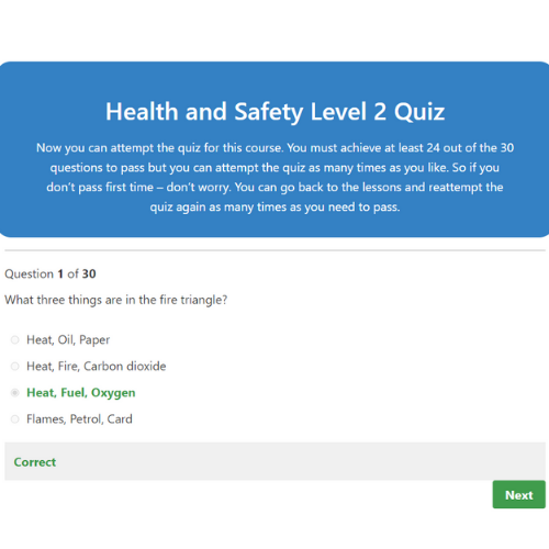 - 第1单元——健康和安全立法——在本课程的第一单元中,我们将考虑什么是健康和安全,以及采取健康和安全预防措施的原因。我们还将研究健康和安全立法的起源,以获得这一领域法律来自何处的强大背景知识。将全面探讨《工作场所健康与安全法》以及“六包”法规、健康与安全管理人员和经批准的行为守则。